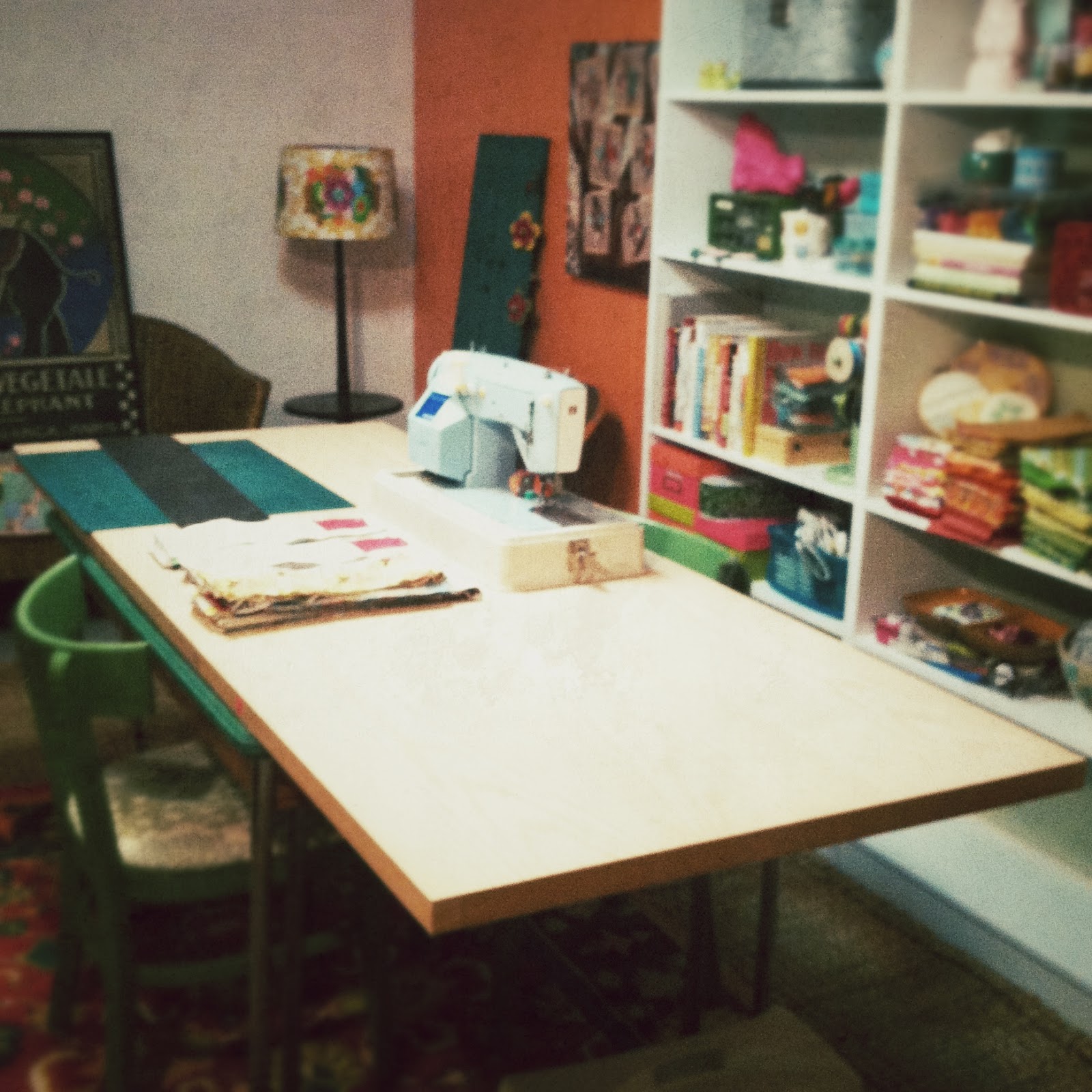 i also hope to bring in a giant work surface - thinking of a solid-core birch door, or even some butcher block countertop. something sturdy. so that i can sew and craft and store all of the 'stuff' that is randomly strewn about.